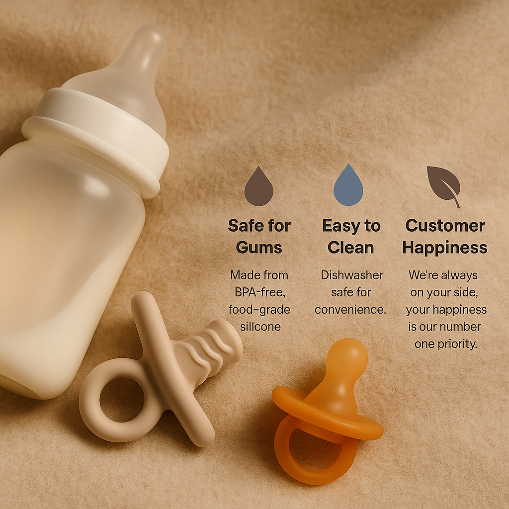 At BabyHaven, we believe comfort begins with care. Our BPA-free silicone teethers are made to soothe tender gums and bring peace of mind to every parent. Safe. Simple. Soft—just as baby moments should be.